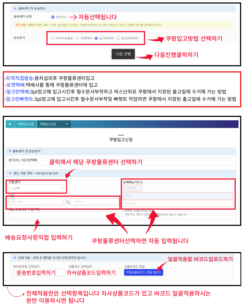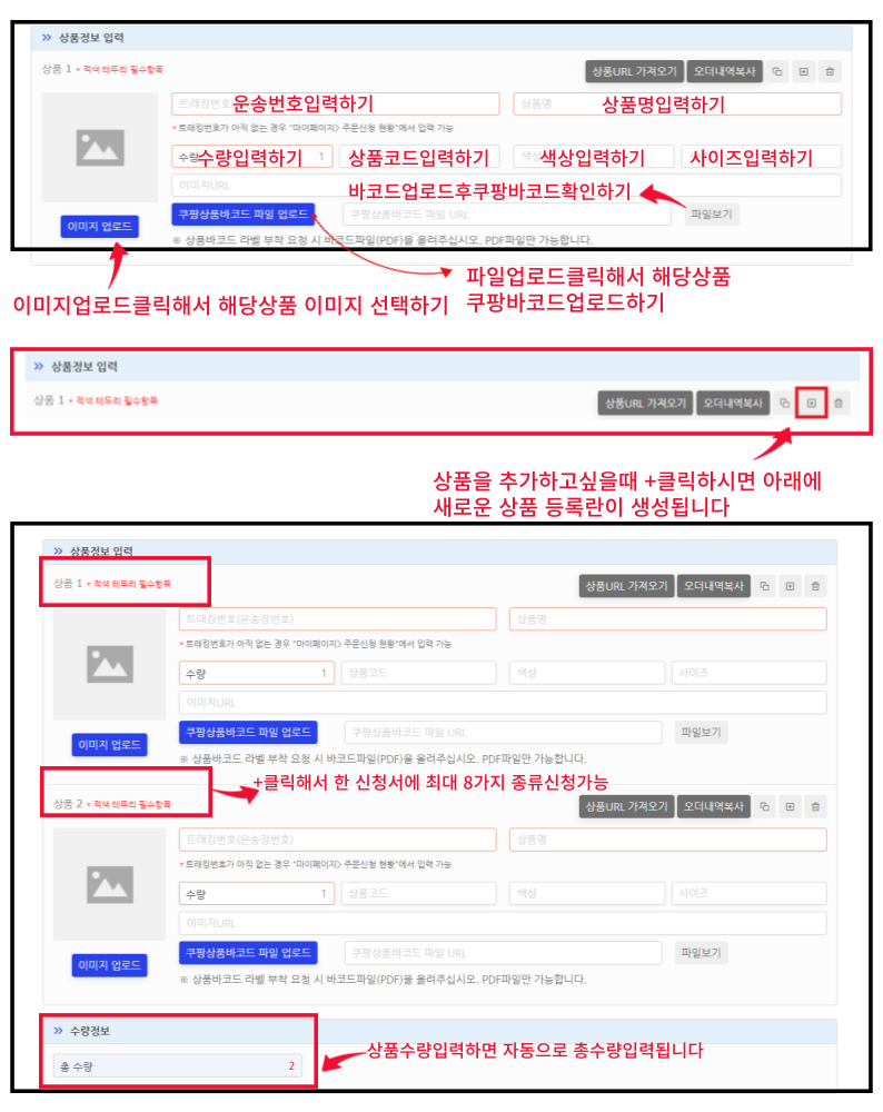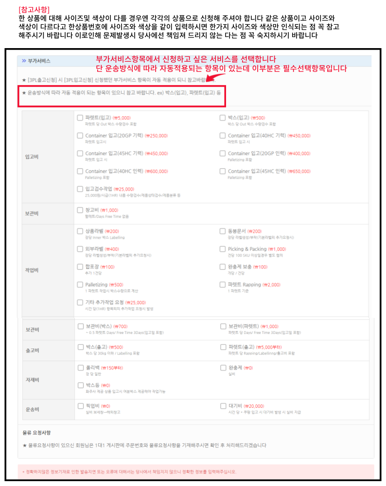* 신청서에 있는 상품 중 하나라도 입고가 된 후에는 신청서 수정이 불가능 합니다.